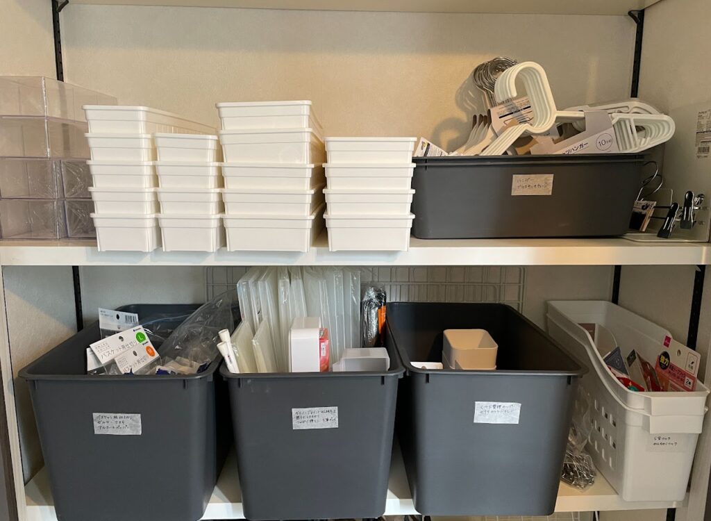 靴箱中段は、片付け作業で使う細かい備品を収納
